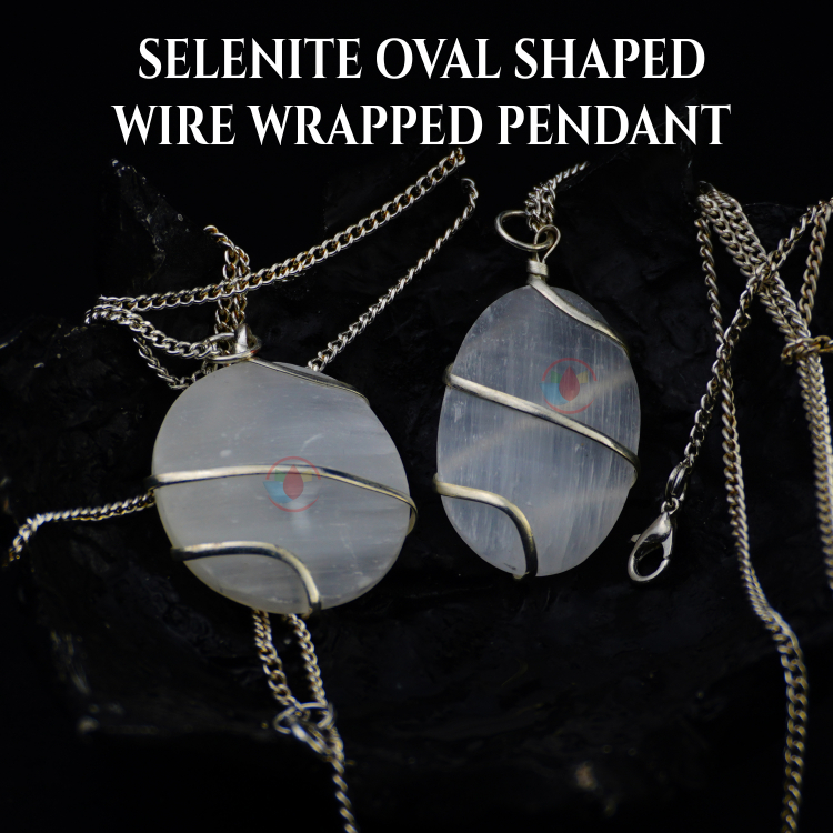 - Material: Selenite Natural Gemstone Oval Shape Wire Wrapped Pendant with High Quality Metal Chain For Healing Properties Charged Activated Energized Crystal Oval Shaped Wire Wrapped Pendant.