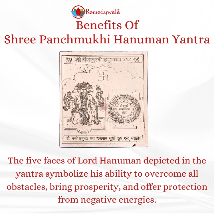- The Shree Panchmukhi Hanuman Yantra clears negative influences and promotes positive energy around the individual, ensuring a life full of positivity and harmony.