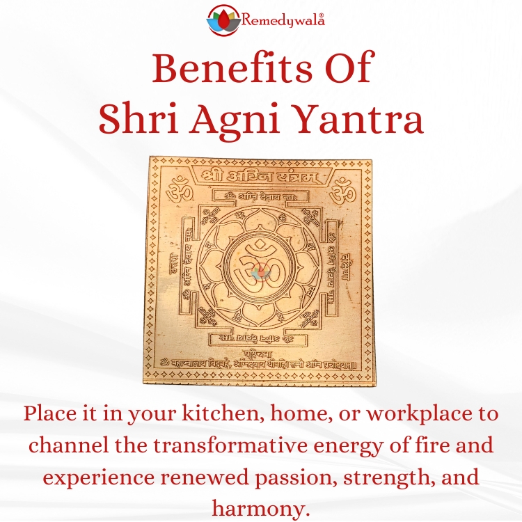 • Shree Agni Yantra removes obstacles that block progress and supports smooth financial growth and business success. This Yantra is especially helpful for homes with incorrectly placed kitchens or for those facing issues due to fire energy imbalances.