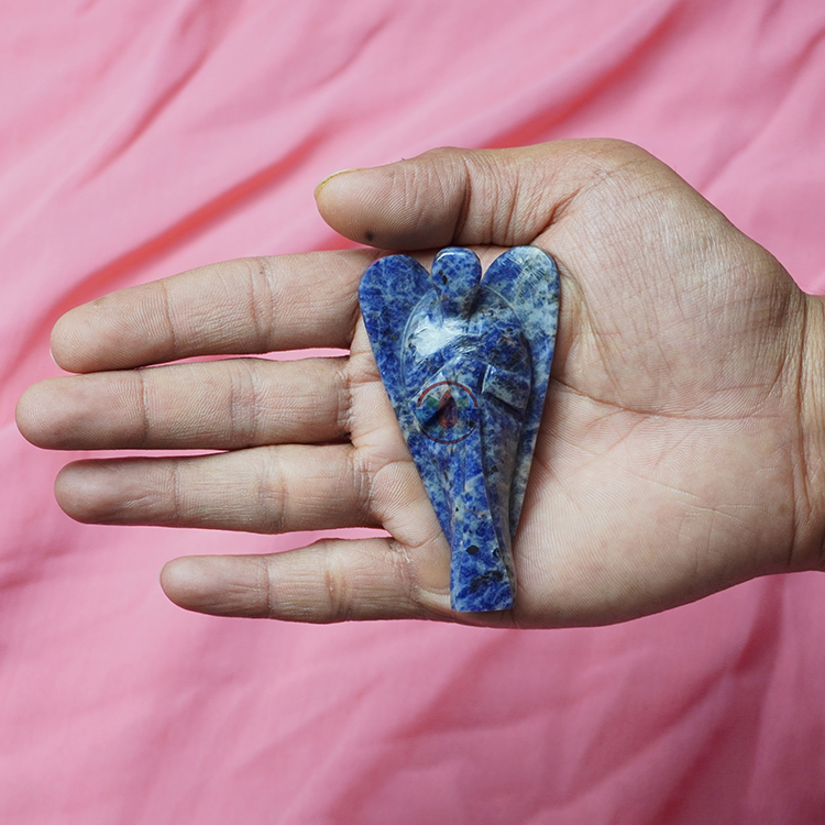 - Charged Natural Sodalite Angel, Natural Crystal Polished Stone Angel Healing Stone Therapy Gemstone For Meditation & Yoga