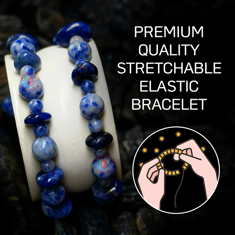 - Material: Natural Healing Sodalite Stones | SPECIFICATION: Stretchable Elastic Sodalite Bracelet | Stone Size: 4 mm & 8 mm | | Diameter: 2.5 Inch | Piece :1