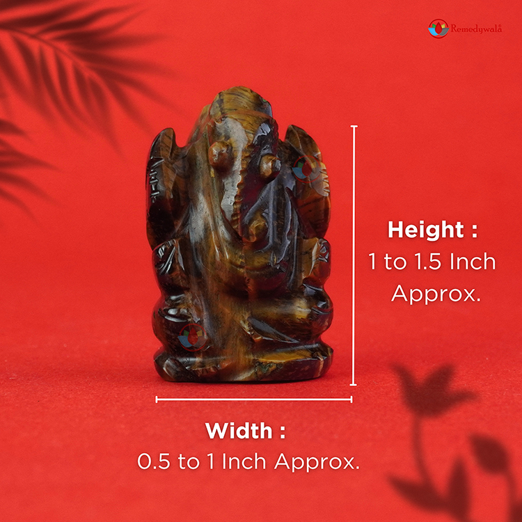 - MATERIAL : Tiger Eye Natural Healing Stone | SPECIFICATION : Natural Stone Tiger Eye Ganesha | HEIGHT : 3 cm approx | SHAPE : Natural Stone | PIECE : 1