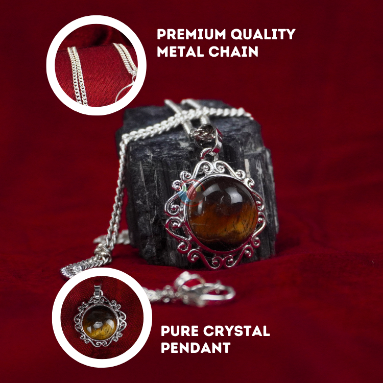 - Tiger Eye Round Shape Royal Pendant with Metal Chain. Reiki Healing and Crystal Healing Raw Stone Tiger Eye Pendant for Women and Men