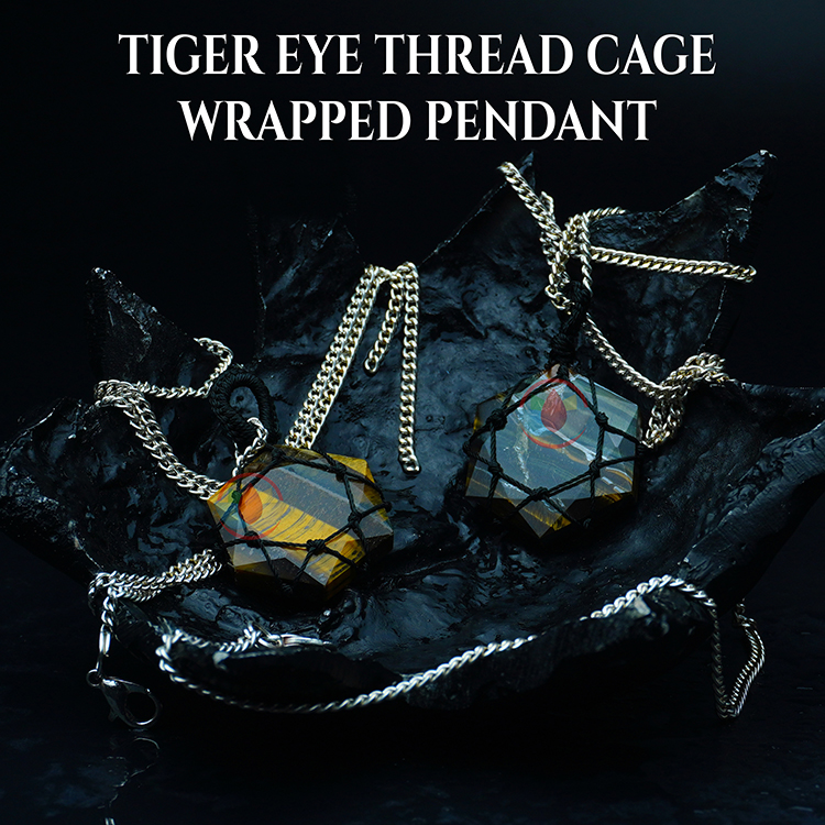 Tiger Eye Thread Cage Wrapped Pendant