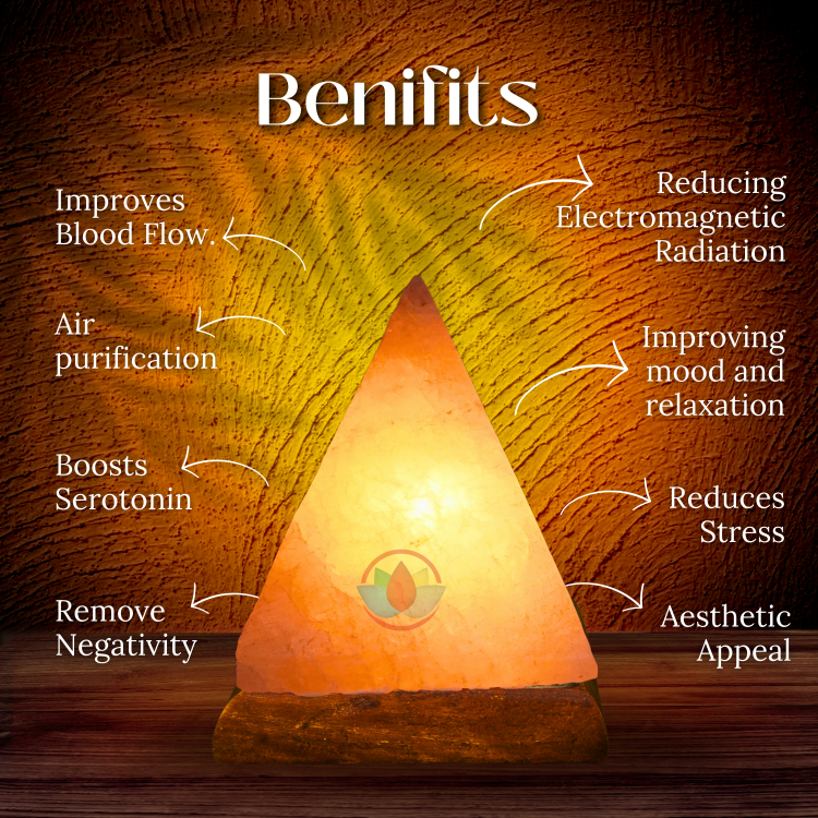 - Himalayan Salt Triangle Crystal Lamp is a great way to naturally improve your mood. It is effective in helping you to relax and unwind at the end of the day. It also improves concentration due to the negative ions in your body thereby improving the supply of blood and oxygen to the brain and other organs in the body.