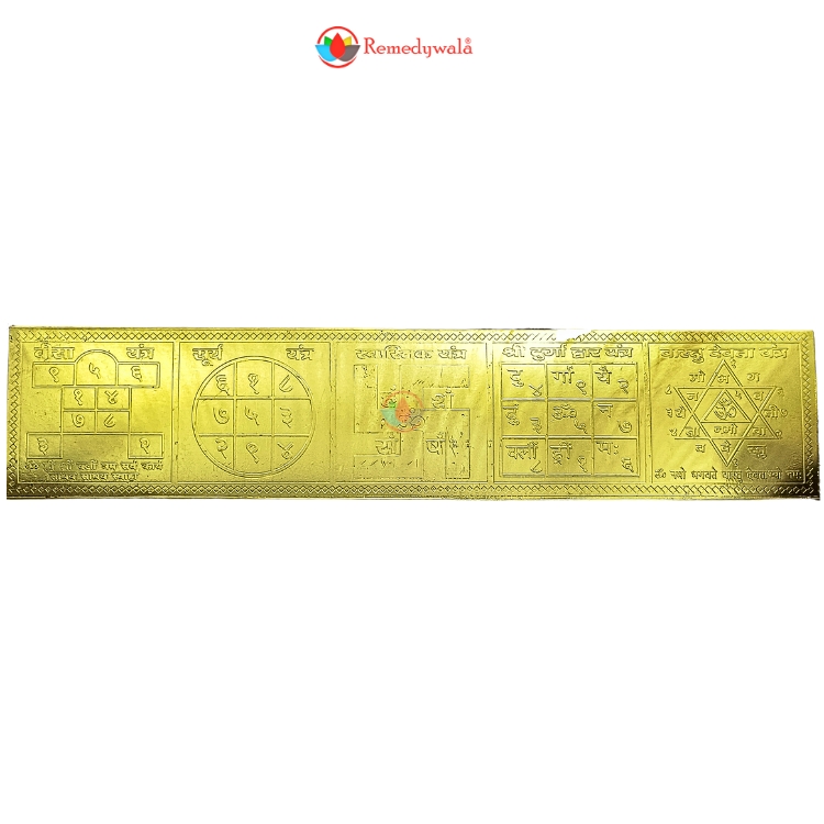 • Includes Surya Yantra, Visha Yantra, Swastik Yantra, Durga Dwar Yantra, and Vastu Devta Yantra.