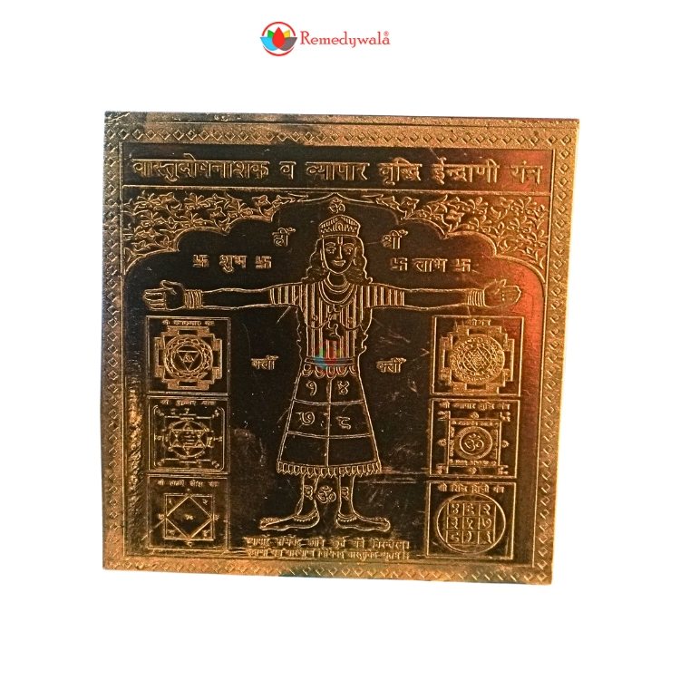 The Indrani Yantra is a sacred geometric tool designed to eliminate Vastu defects (Vastu Dosh) and enhance business growth (Vyapar Vridhi). It is believed to remove obstacles, attract success, and ensure financial stability by balancing the surrounding energies.