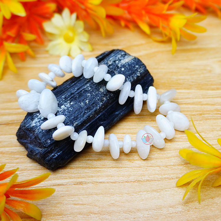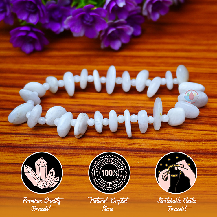 - Material: Natural Healing White Agate Stones | SPECIFICATION: Stretchable Elastic White Agate Bracelet | Stone Size: 4 mm | | Diameter: 2.5 Inch | Piece :1