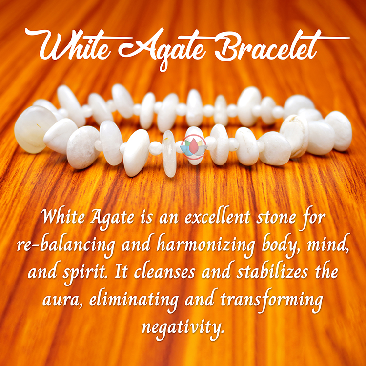 - White AGATE is an excellent stone for re-balancing and harmonizing body, mind, and spirit. It cleanses and stabilizes the aura, eliminating and transforming negativity.