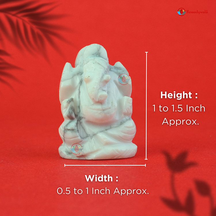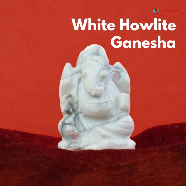 - White Howlite Ganesha idol carries very pure energy and can help to connect more easily to your higher self through the use of this idol at the time of meditation.