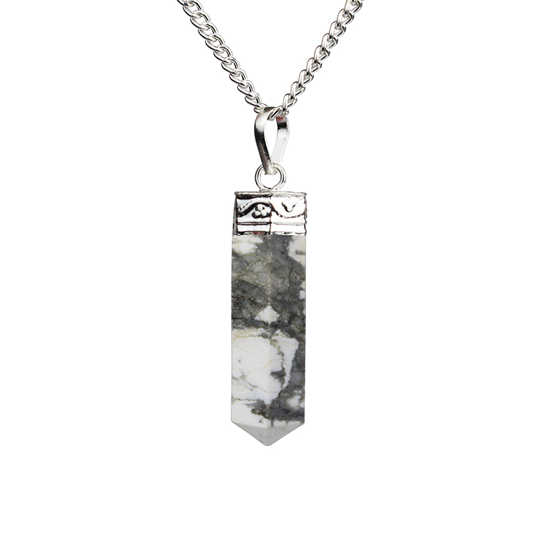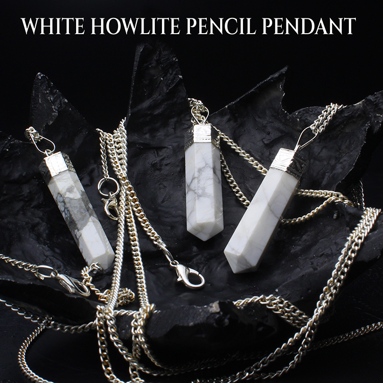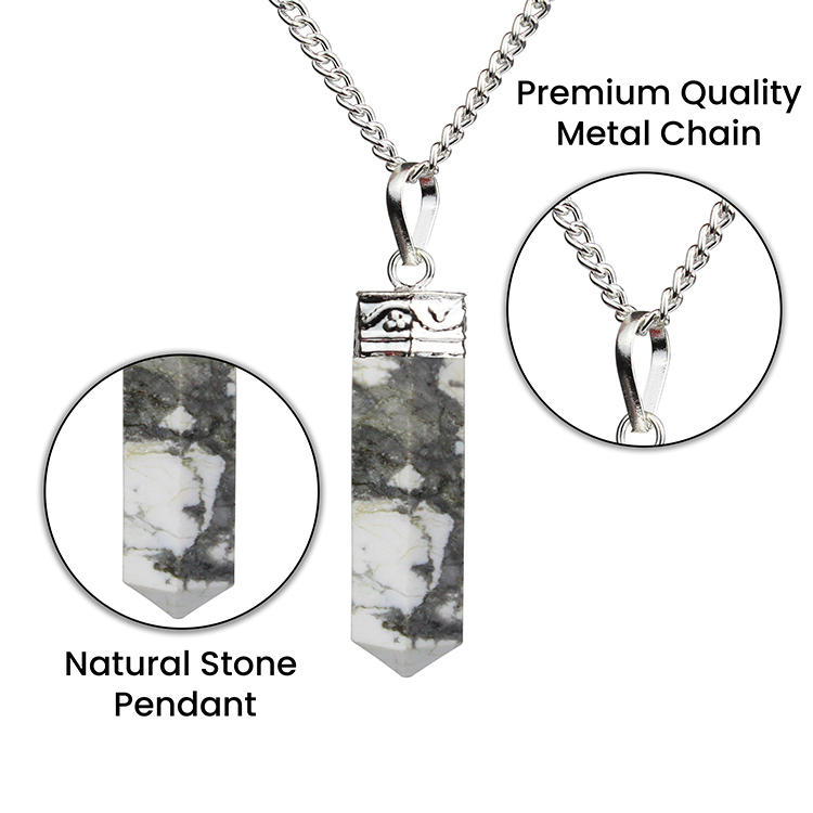 - Material : White Howlite Natural Gemstone Pencil pendant with High Quality Metal Chain For Healing Properties Charged Activated Energized Crystal Stone Pencil Pendant.