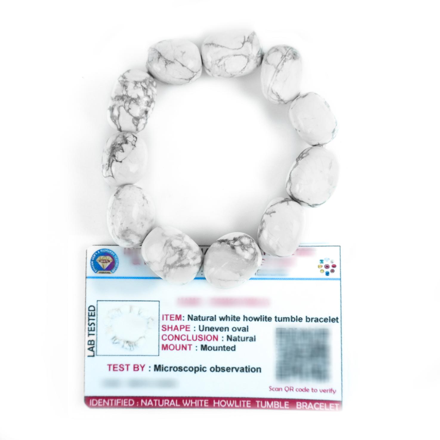 White Howlite Tumble Bracelet with Certificate for Reiki, Balance Chakra, Positive Energy, and Healing. White Howlite Stone Bracelet. Gemstones Tumble Beads Stretchable Bracelet for Men and Women.