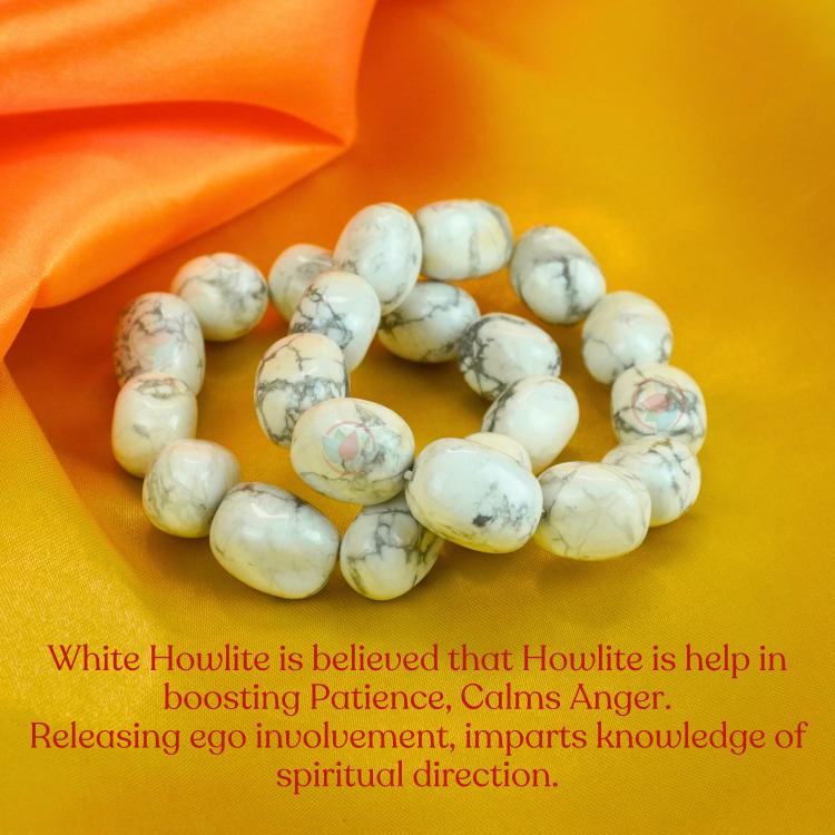 Material : Natural Healing White Howlite Stones | SPECIFICATION : Stretchable Elastic White Howlite Bracelet | Stone Size : Free | Shape : Round Stone | Diameter : 2.5 Inch. | Piece : 1