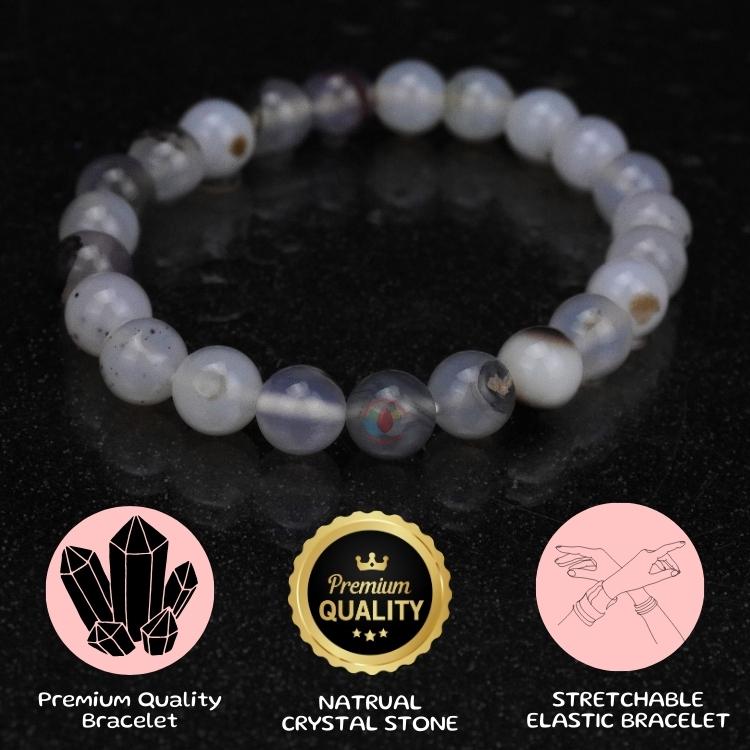- Material : Natural Healing White Onyx Stones | SPECIFICATION : Stretchable Elastic White Onyx Bracelet With Certificate | Stone Size : 8 mm | Shape : Round Stone | Diameter : 2.5 Inch. | Piece : 1