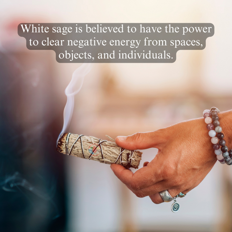 - White sage is believed to have the power to clear negative energy from spaces, objects, and individuals. Smudging with white sage can help to purify and cleanse a person’s aura or energy field, as well as the energy in a room or other space.