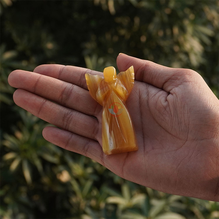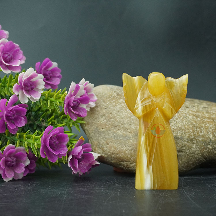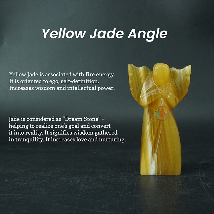 • Stone: Yellow Jade Natural Crystal Stone, Hand carved and polished Angel